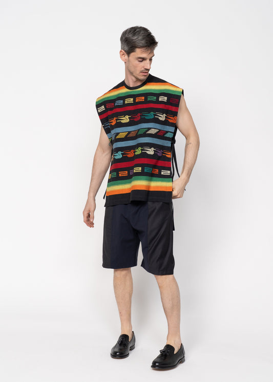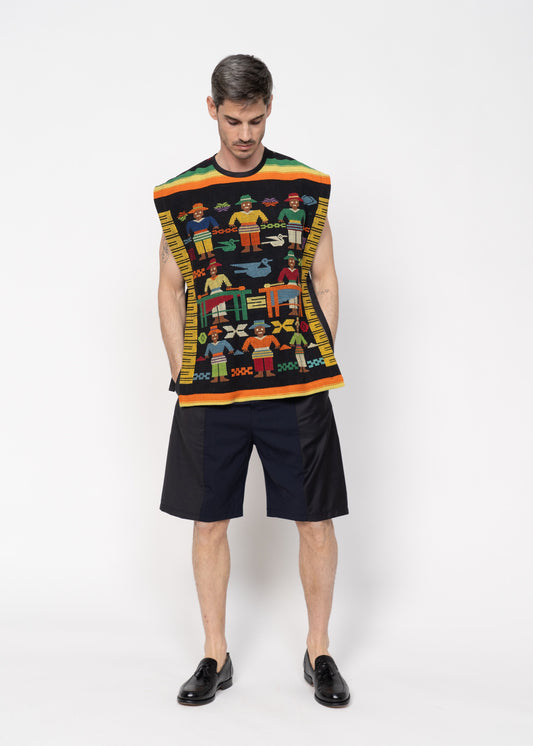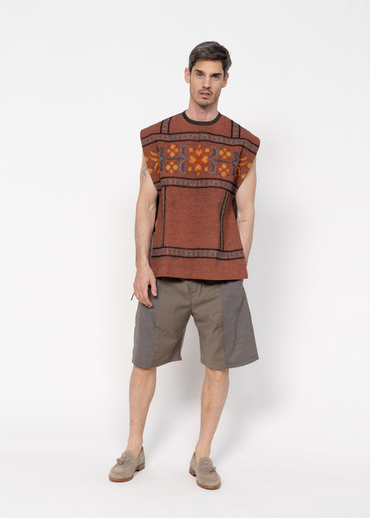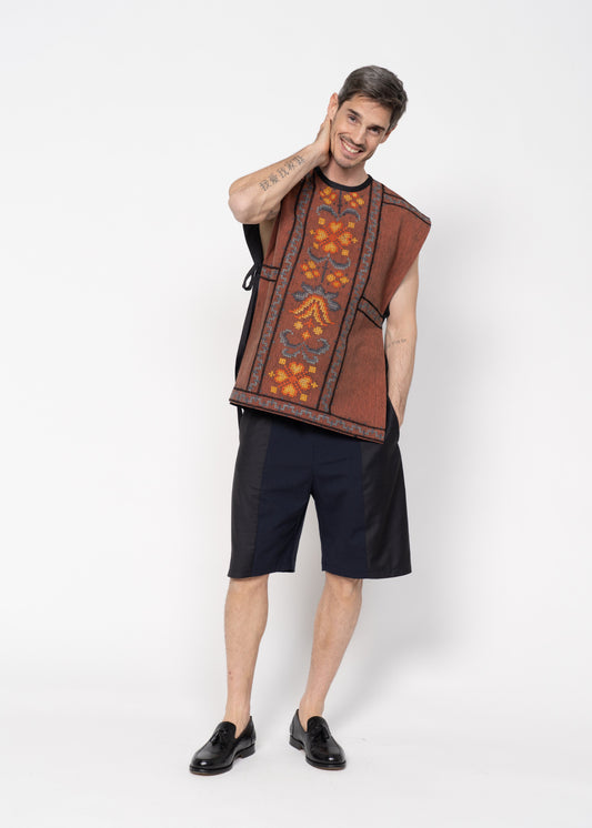 The André Shirt Handwoven / Brick Red with Light Creme Embroidery