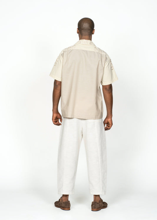 The André Shirt / Beige Poplin Cotton with Crochet and Embroidery