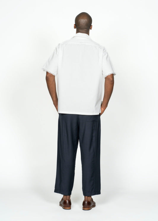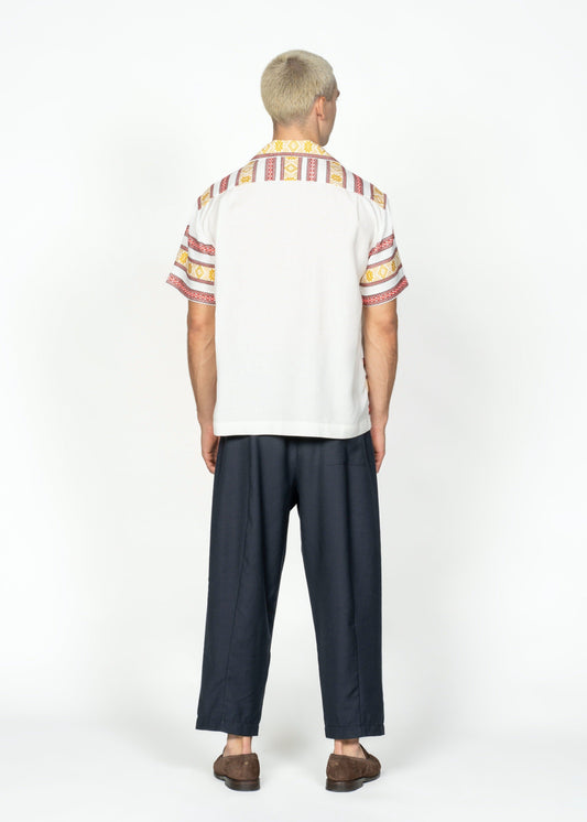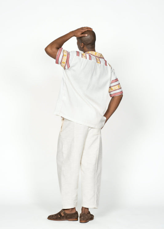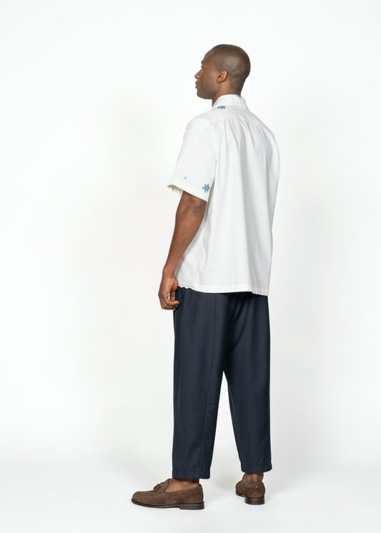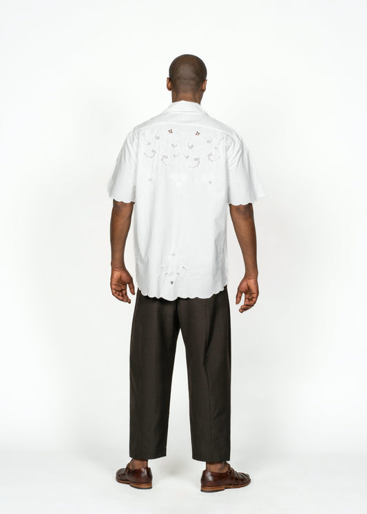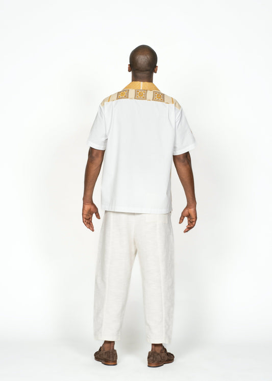 The André Shirt / White Poplin Cotton with Yellow Embroidery