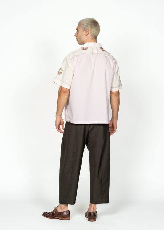 The André Shirt / Baby Pink with White Stirpes and Handwoven Details