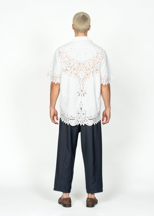 The André Shirt / White Poplin Cotton with Semicircular Back