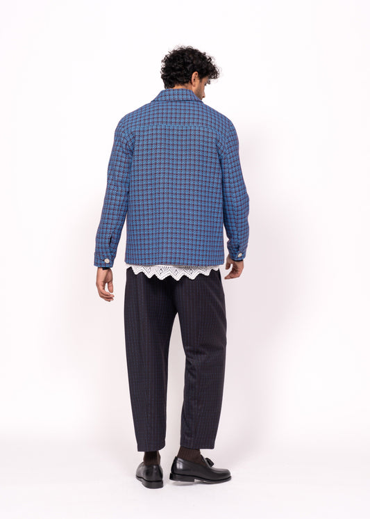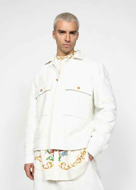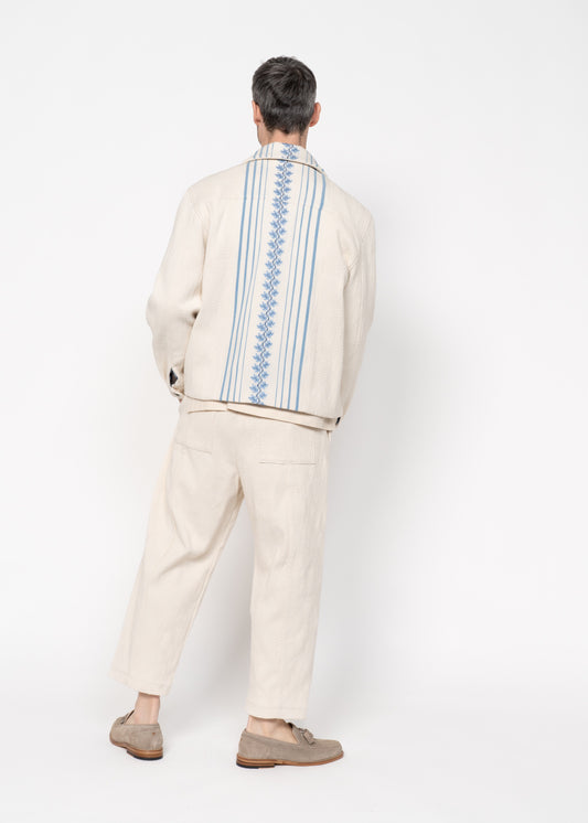 The Easy Jacket Handwoven Bouclé / Off White and Blue Embroidery