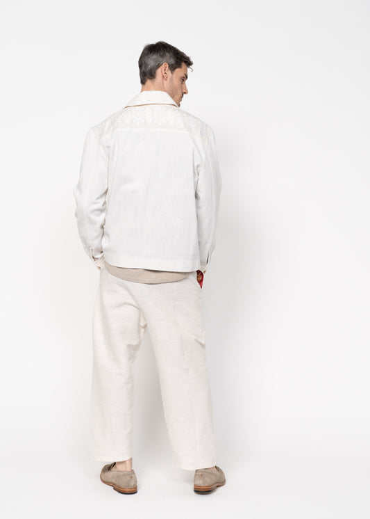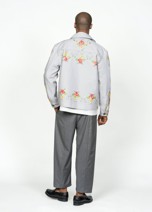 The Easy Jacket / Light Grey with Embroidered Flowers
