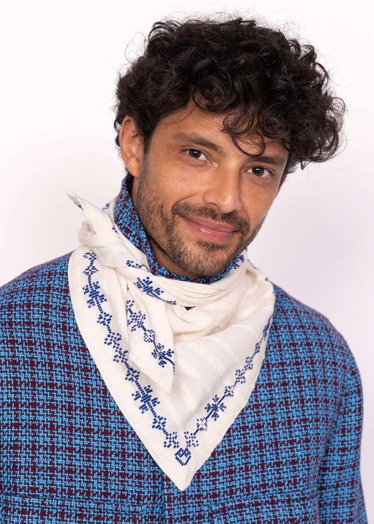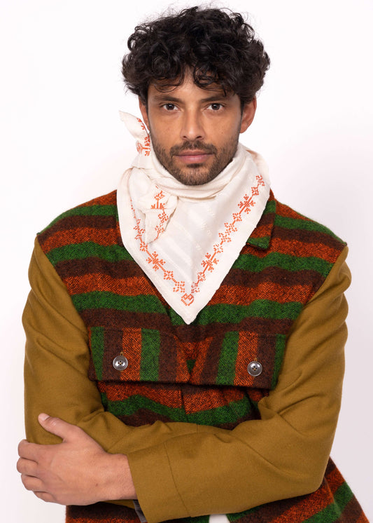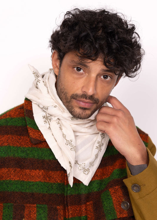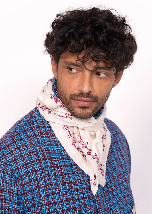 Introducing "The Scarf Bouclé", entirely handwoven it features intricate embroidery in a vibrant colours, adding a touch of sophistication and style. Crafted from premium materials, it offers a cozy feel, making it ideal for cooler seasons while adding a timeless elegance to your look.