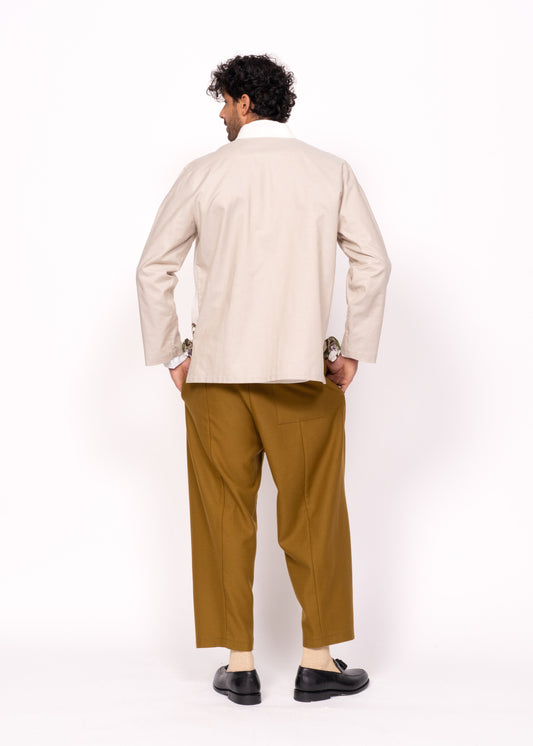 The Tang Shirt is a homage to traditional Chinese values and heritage, symbolizing prosperity, good fortune, and unity. Our interpretation represents a modern development inspired by traditional Chinese attire, blending ancient design with a contemporary twist, making it an excellent choice for both everyday wear and special occasions. It features a mandarin collar that fastens at the front with hand-crafted frog buttons, ensuring a unique and artisanal touch.