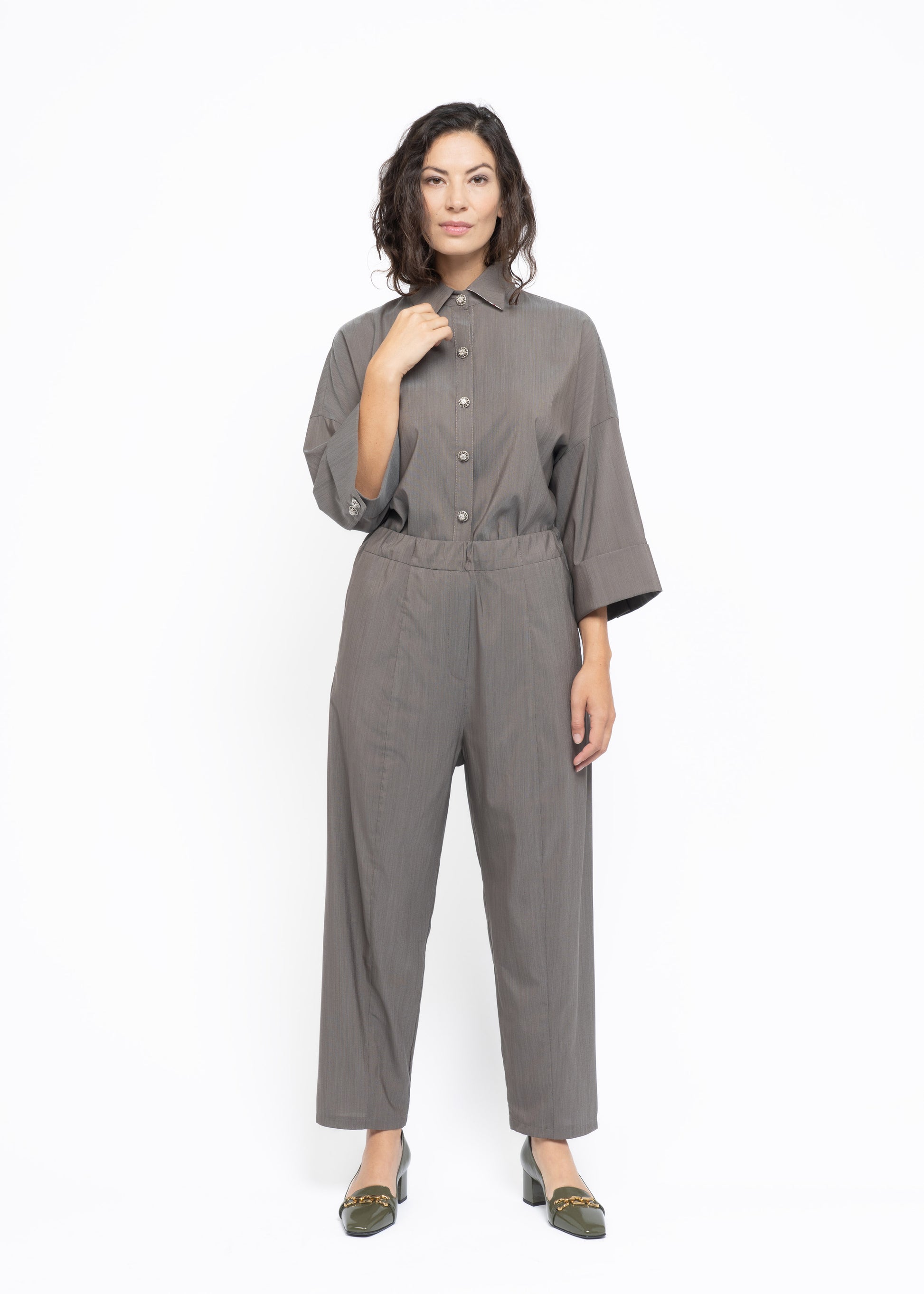Crafted from high-end lightweight wool in a sophisticated dark blue, these pants combine effortless comfort with refined elegance. Designed with an elastic waistband for ease of wear, they elevate any outfit while maintaining a timeless, polished silhouette.