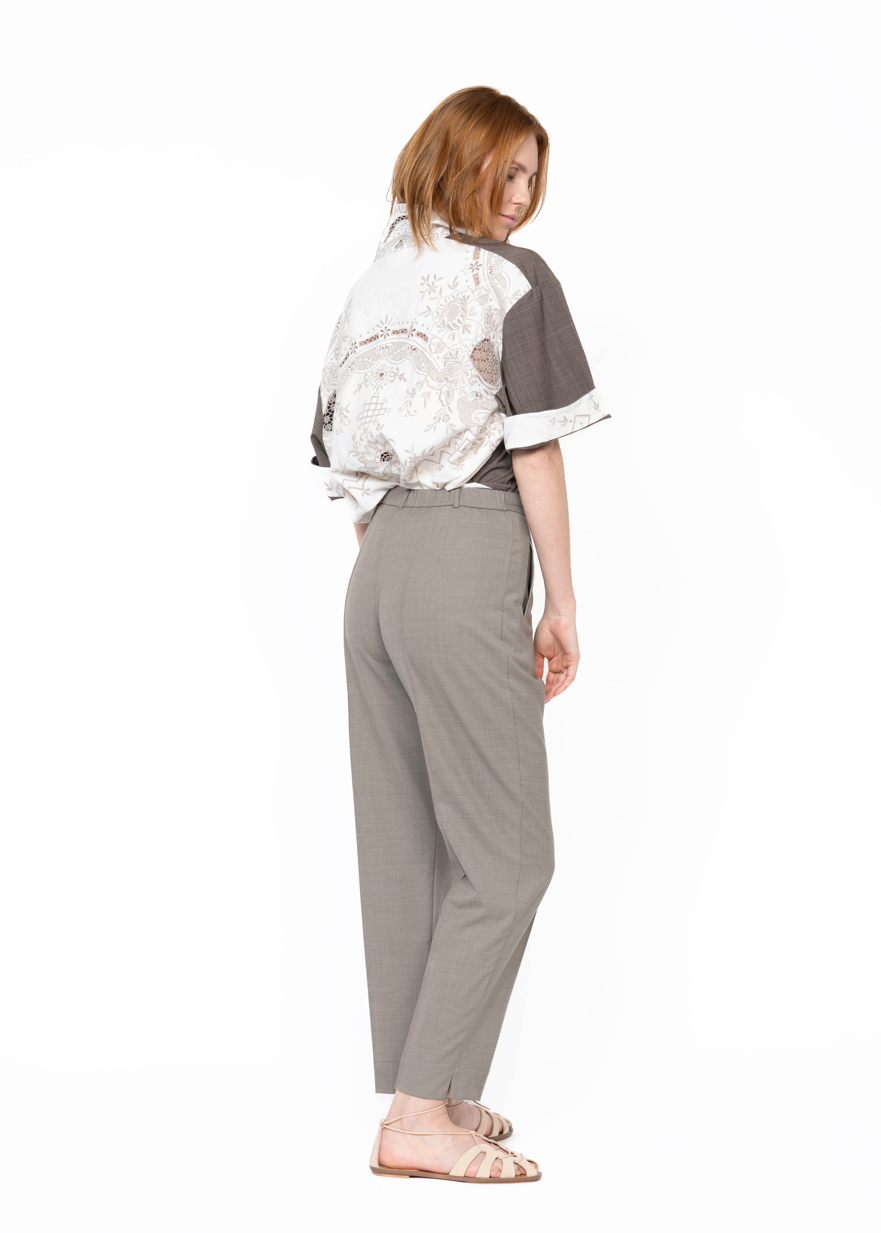 The Slim Pants are crafted from brown French lightweight wool, combining elegance with exceptional comfort. The inner lining extends up to the upper thigh to reduce transparency and enhance wearing comfort.