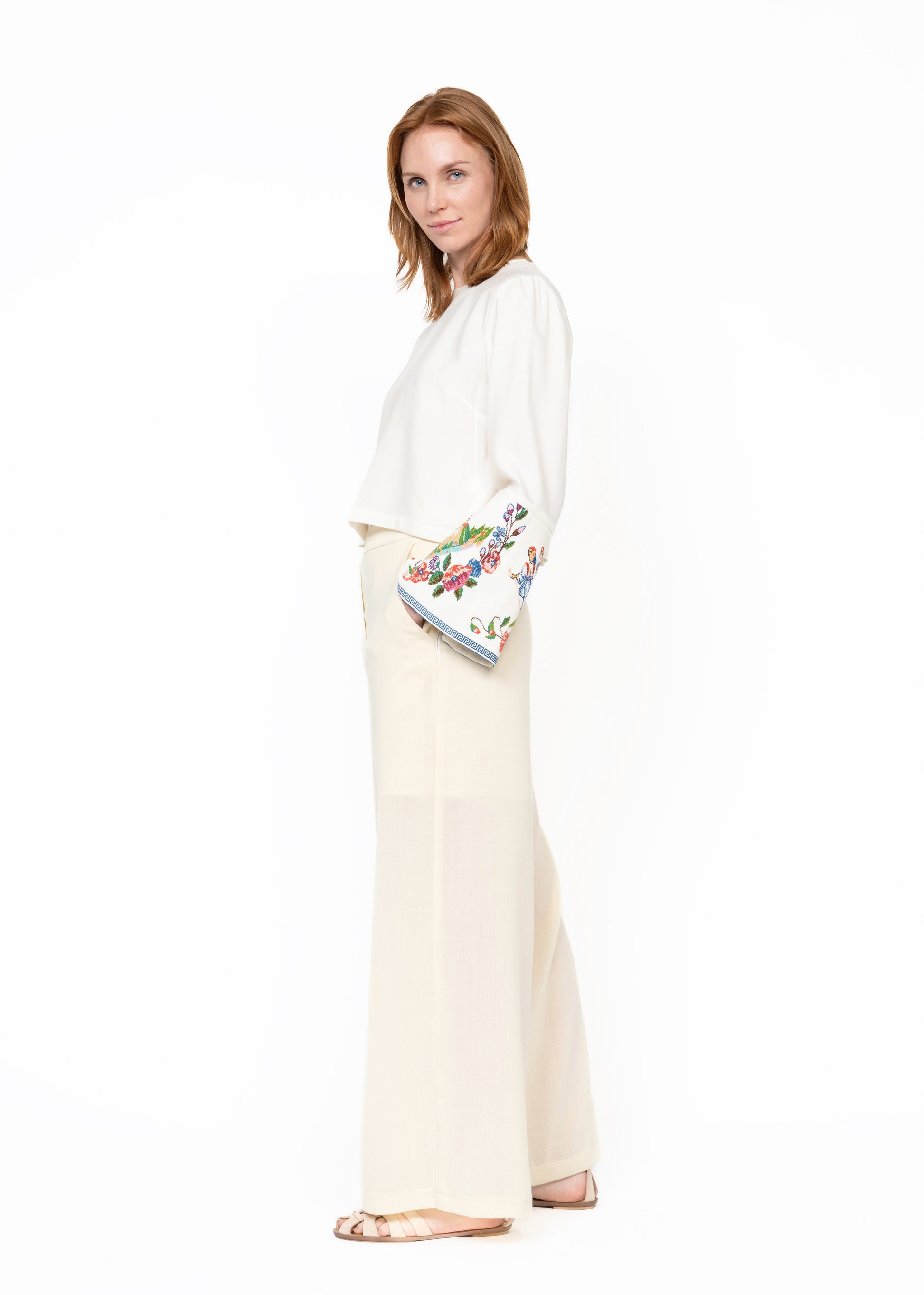 The Cropped Shirt White Embroidered Cuffs