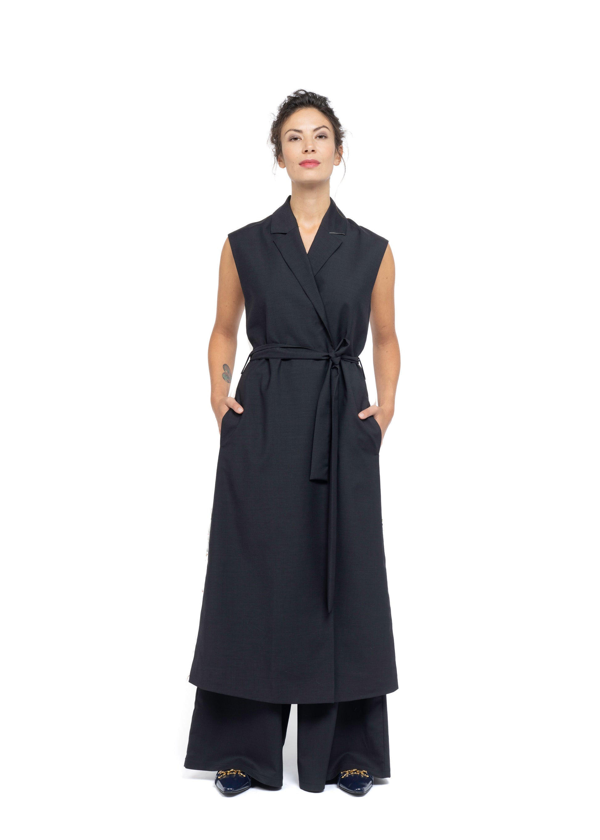 Functional yet refined pockets add practicality without compromising style. The included belt allows this adaptable piece to be worn as a dress, offering multiple styling possibilities and a contemporary, sophisticated appeal.