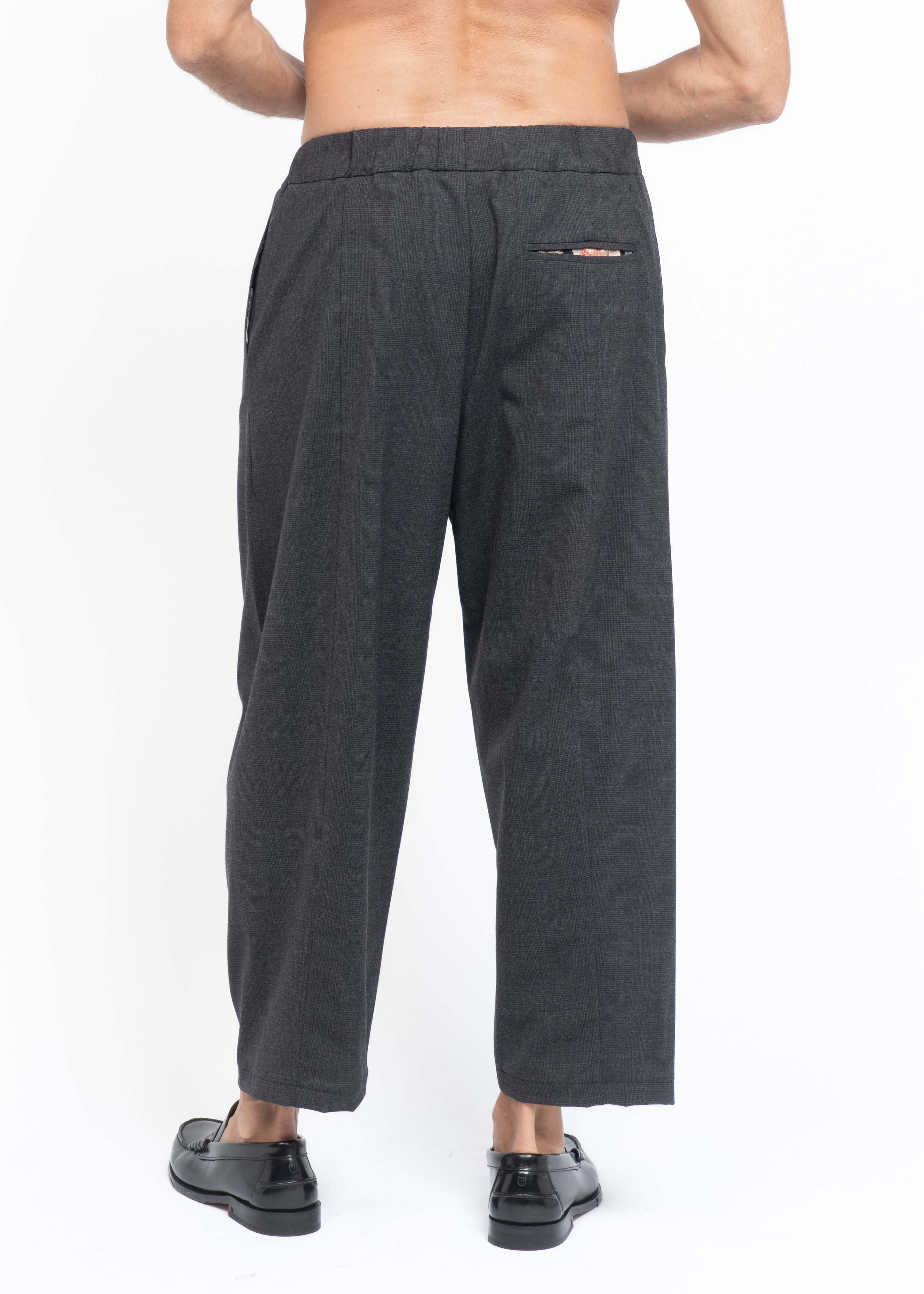 "The Pants" feature an elastic waistband that enhances comfort and freedom of movement without sacrificing style or formality. They have an ankle-length cut and a loose fit, offering both elegance and ease.